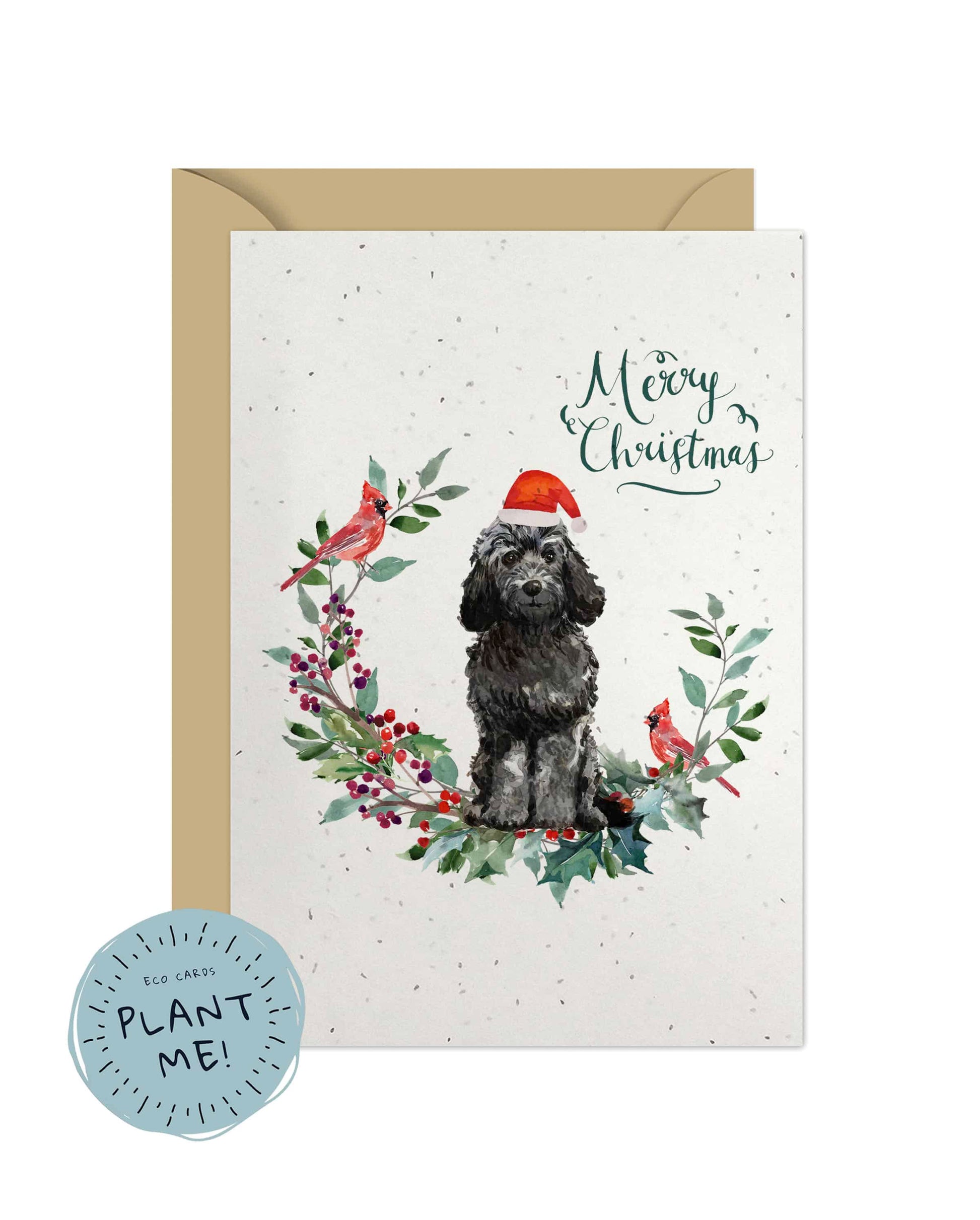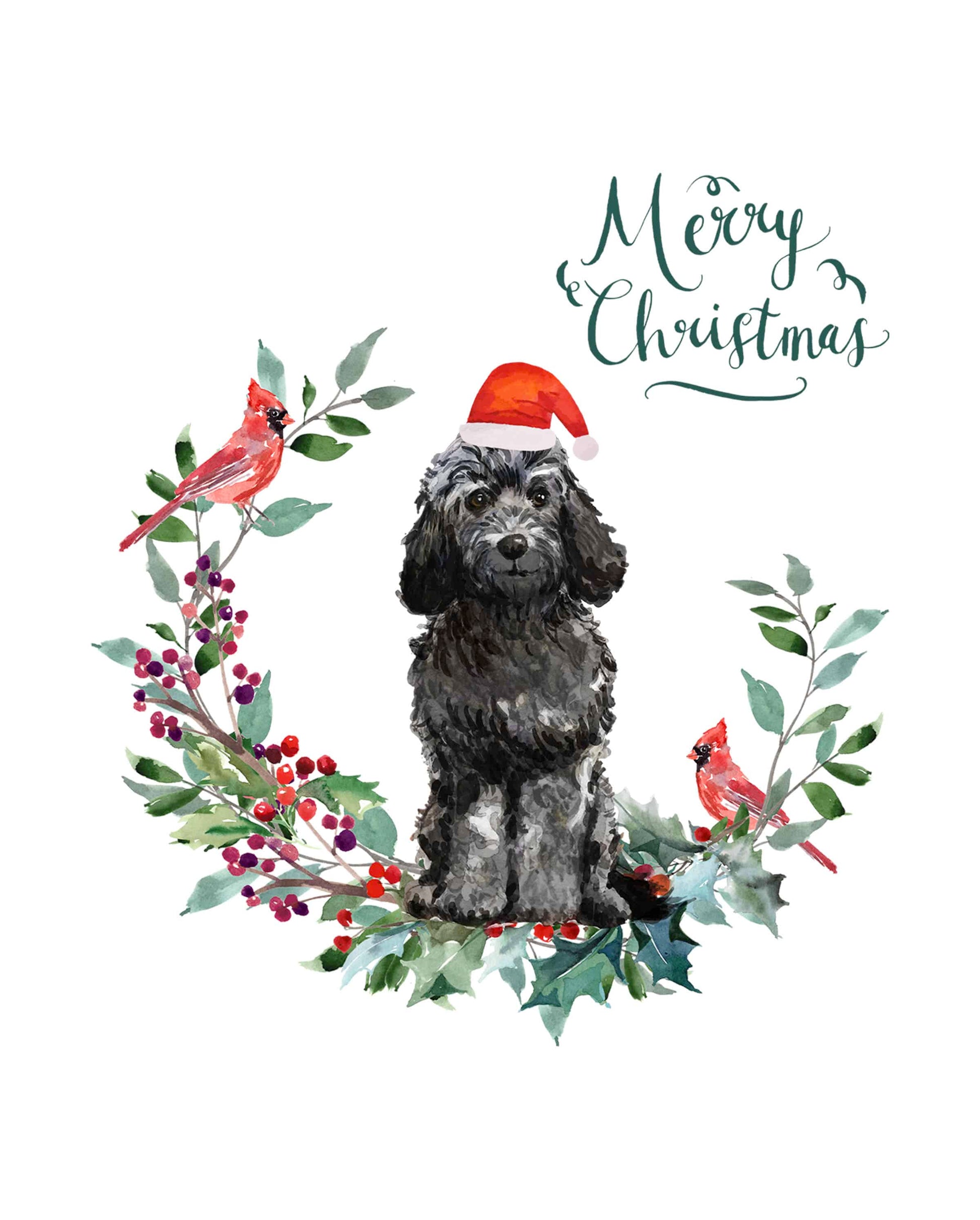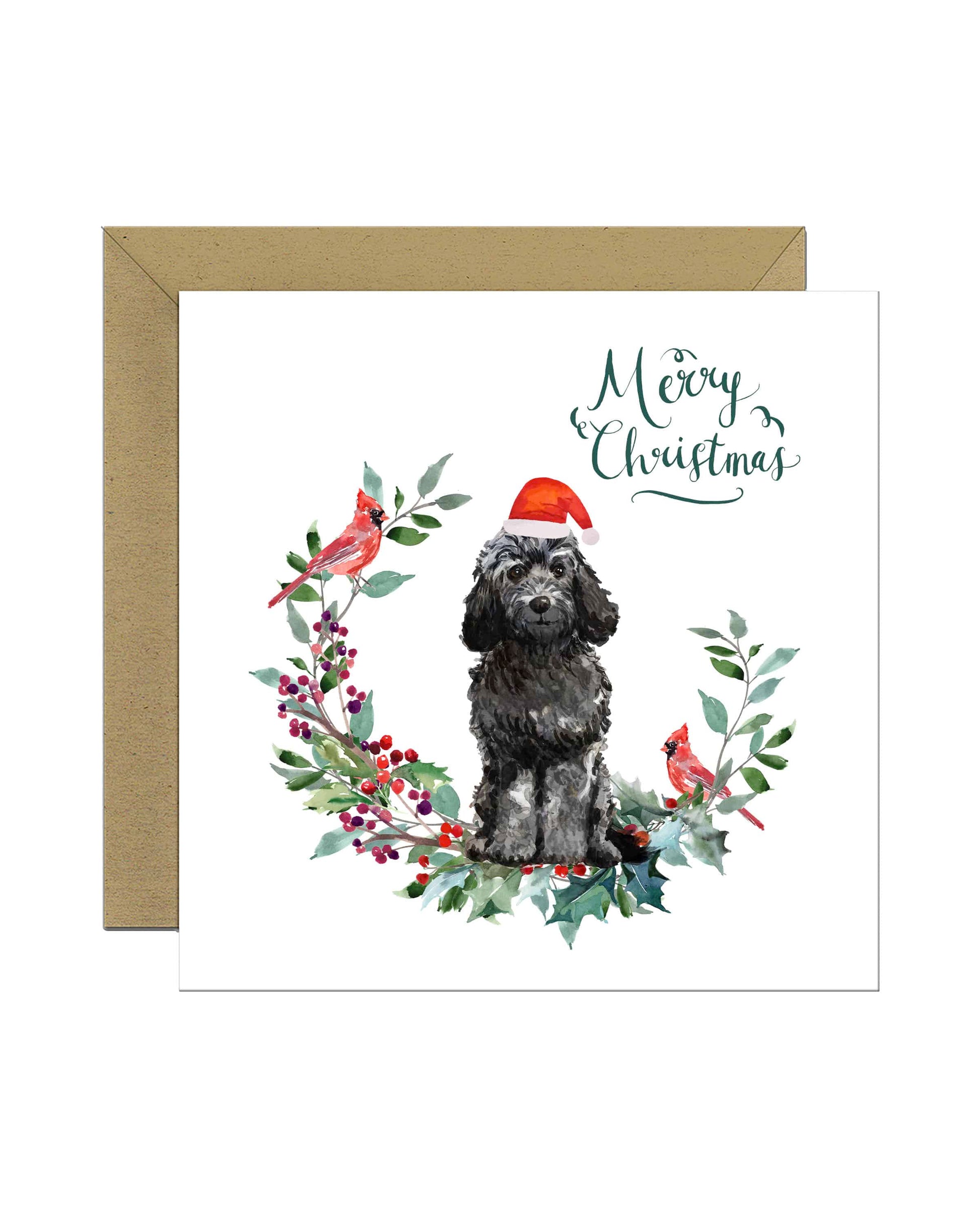 Black Cockapoo Dog Christmas Card