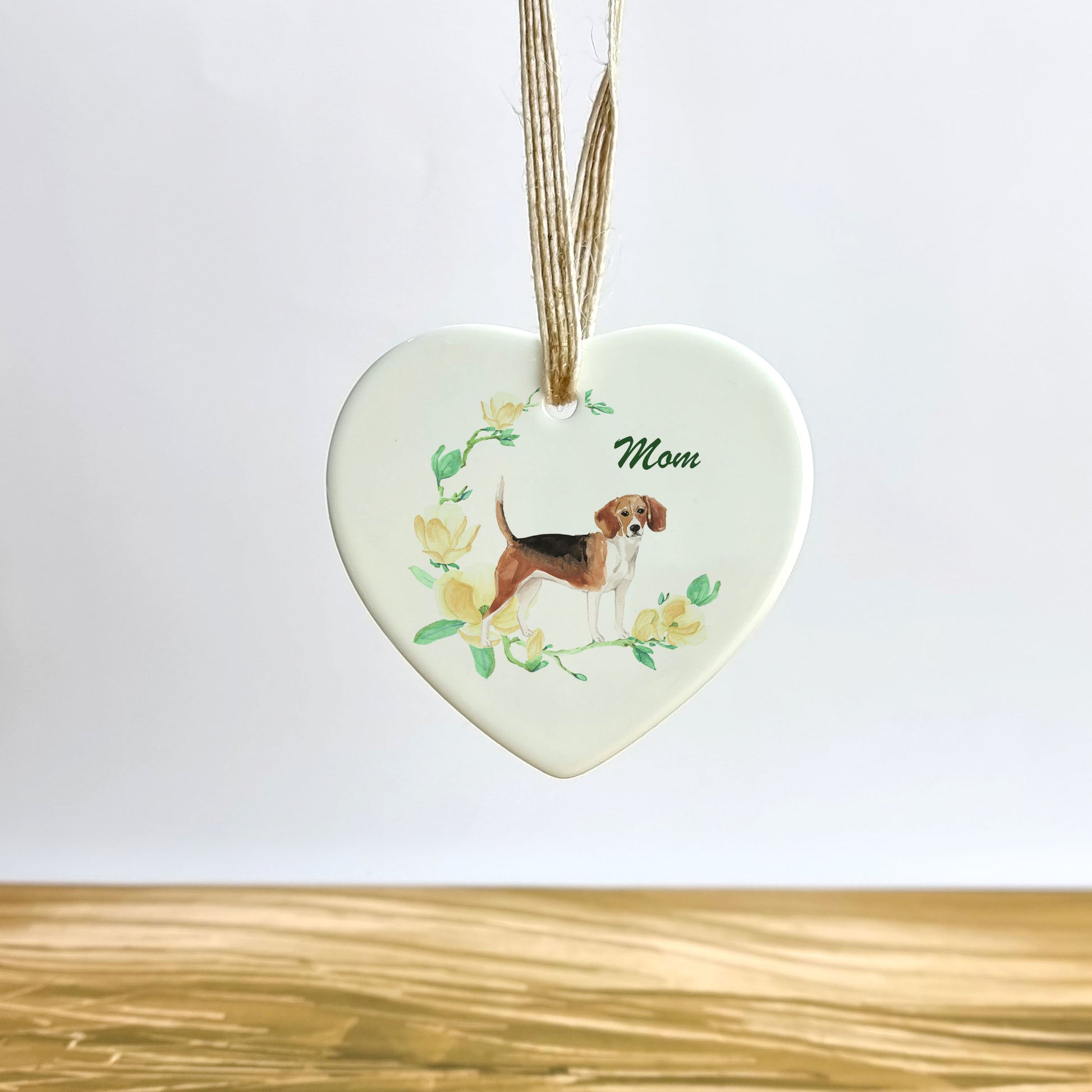 Our ornaments are not just for Mother's Day. You can also hang these on the wall or the mantlepiece. Customise the front and back with your four-legged friend.